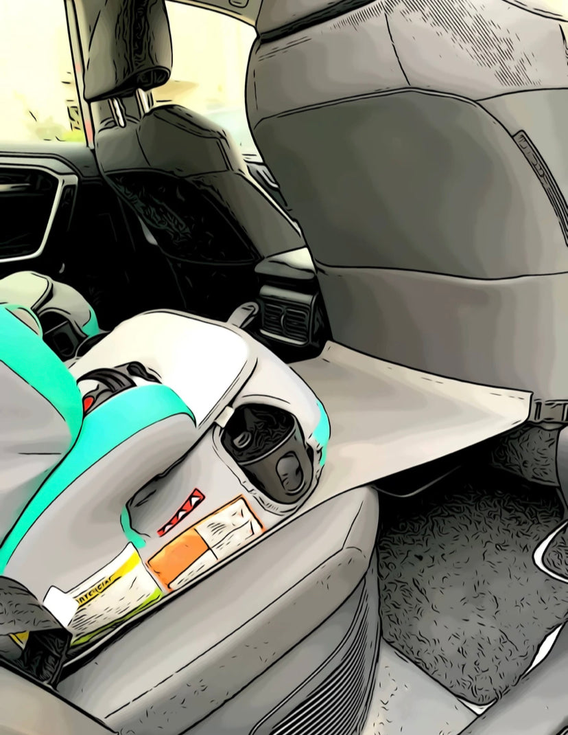 1. Lay the Air Cot flat on the seat with the two loops facing up, thread the seat belt through the loops, and fasten the belt around the child.