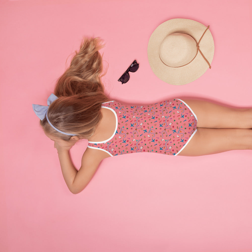 This girls' swimsuit has it all - comfortable fit, elastic fabric, and a deep-colored print that won't fade in the sun and water. The double-layered front, bias binding, and 38–40 UPF ensure that the kids can be their active selves, and the parents don't have to worry about any wardrobe malfunctions.