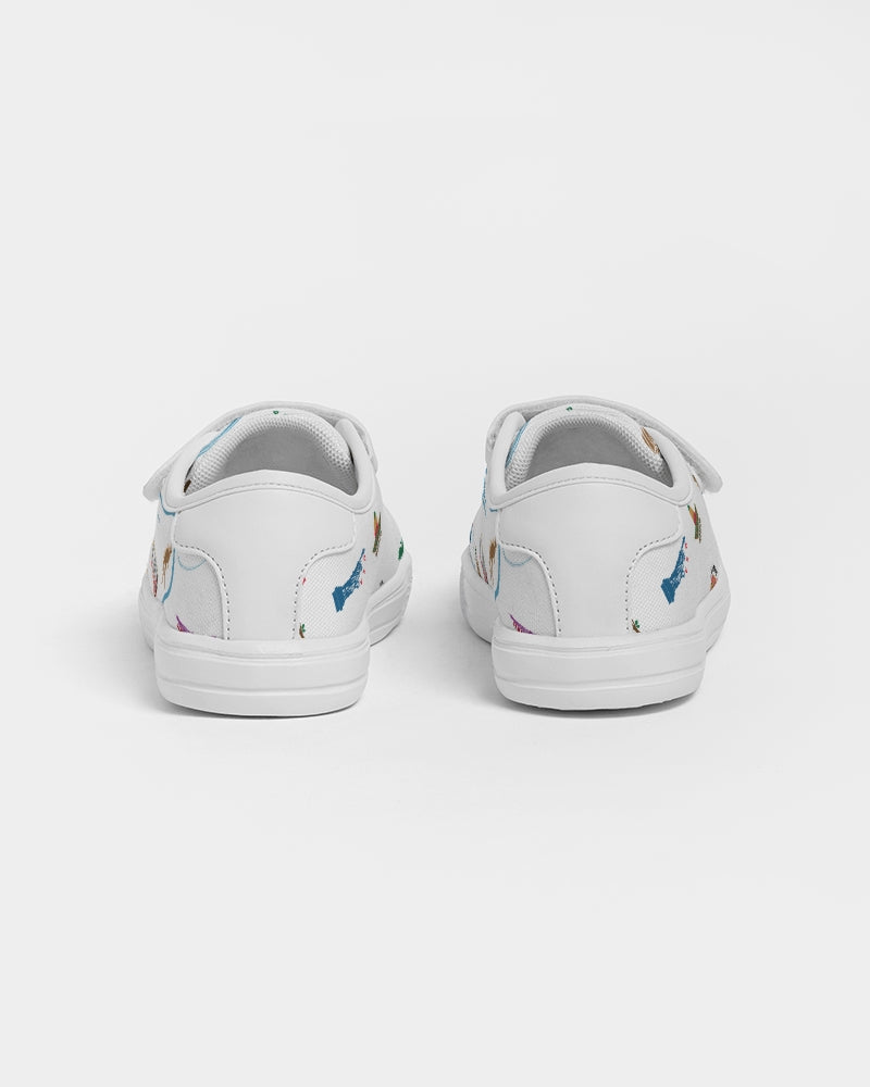 About The ArtPassport Stamps Inspired by the love of travel. Product DetailsDitch the laces and get a cool Kids Velcro Sneaker, for a durable, comfy shoe. Equipped with easy hook and loop closure, you'll be out the door in no time.